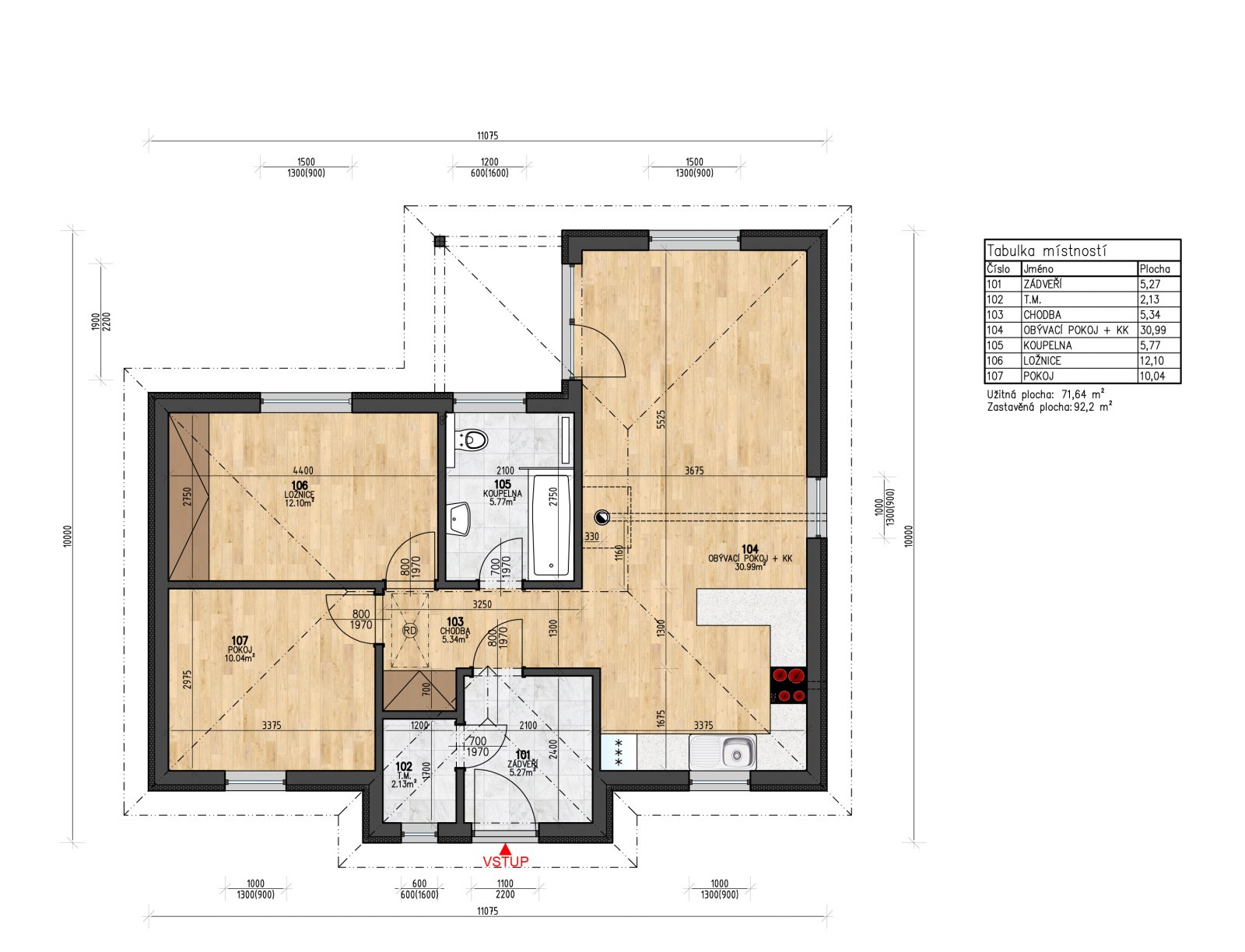 BUNGALOV 71 je finančně nenáročná dřevostavba, s velmi jednoduchou dispozicí pro 3 až 4 člennou rodinu. Výstavba tohoto montovaného bungalovu je možná i na menších pozemcích.