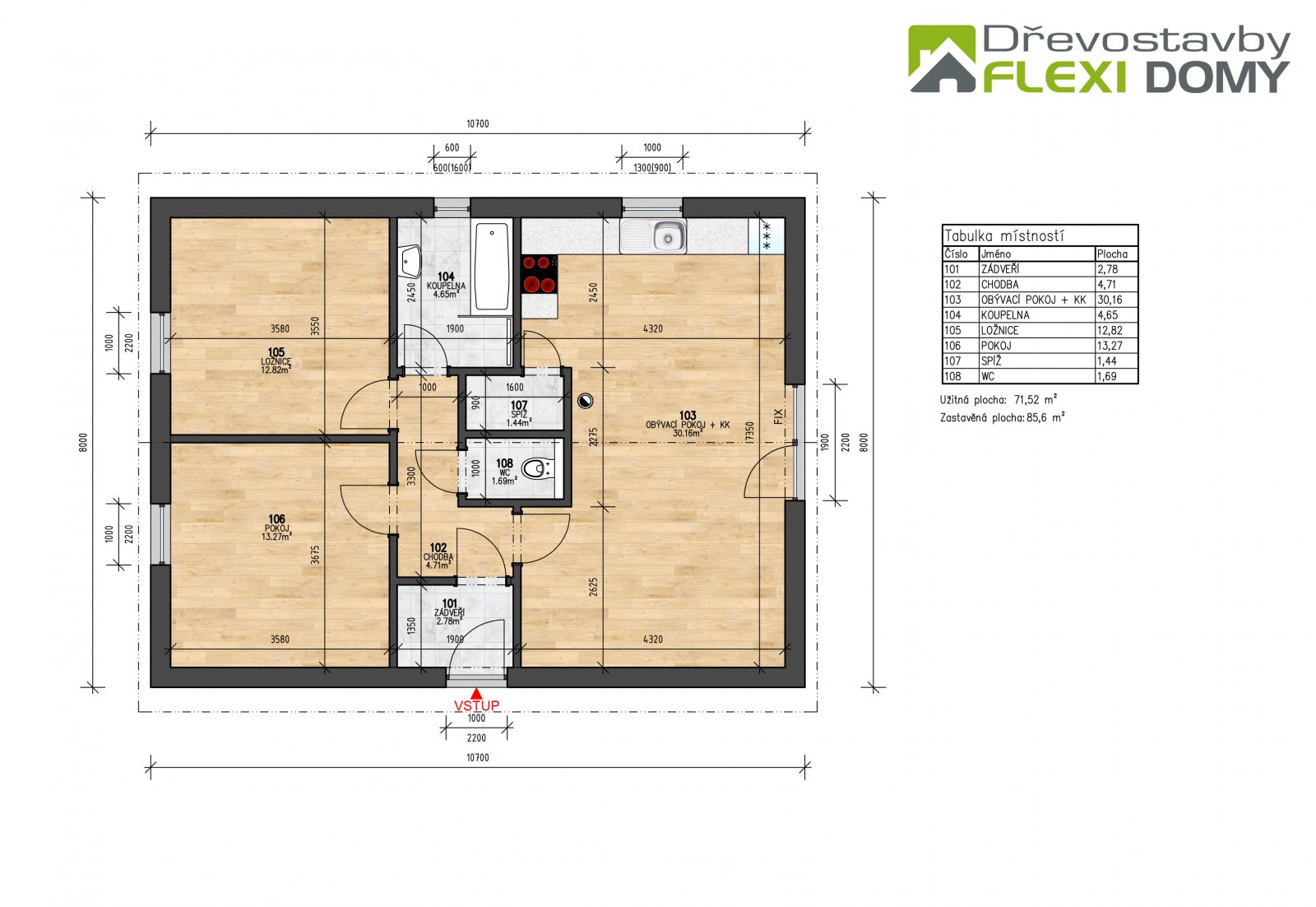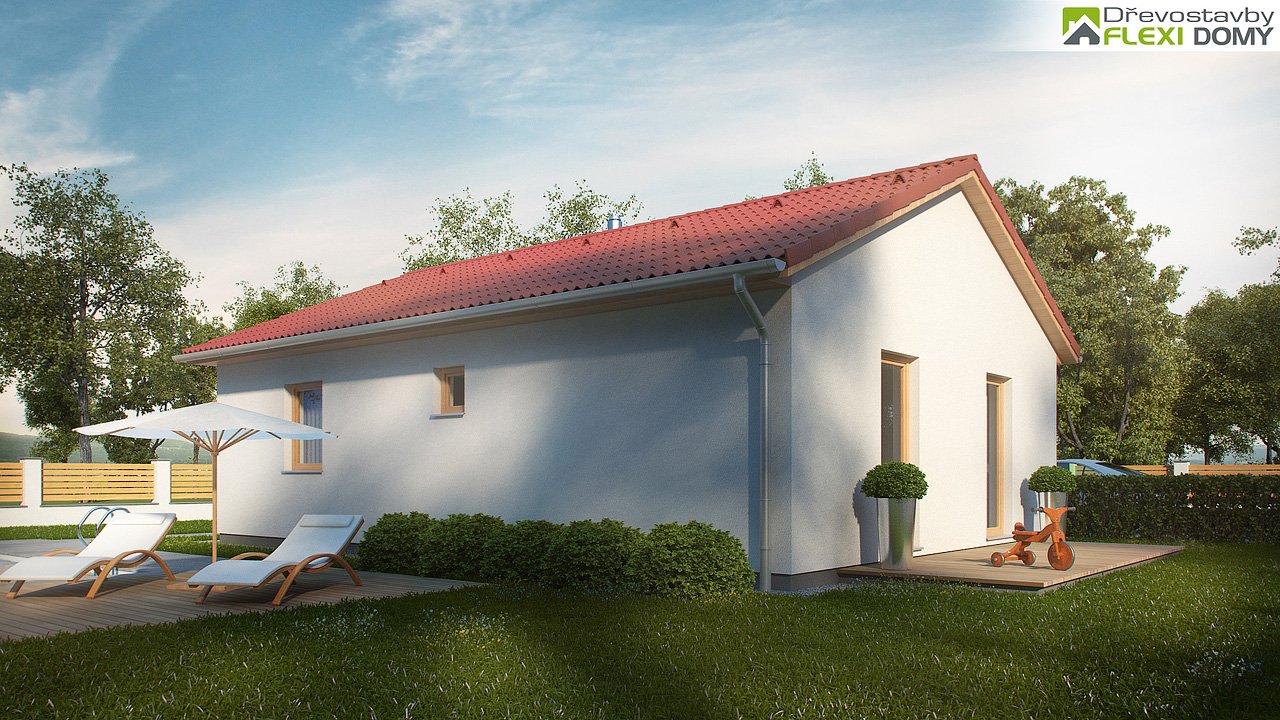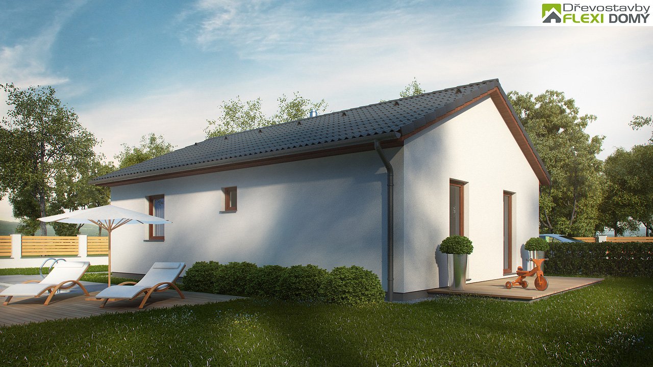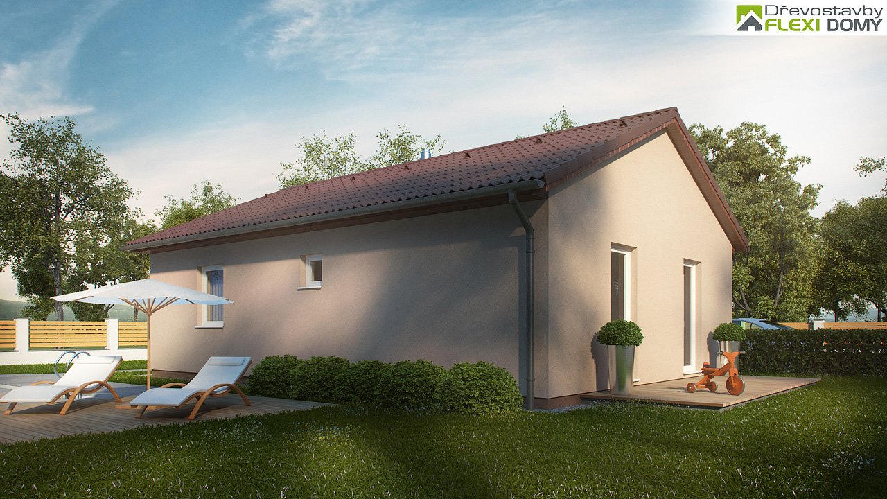 Dřevostavba BUNGALOV 72 o dispozici 3+1 je vhodná pro starší pár ale i pro mladou rodinu se dvěma dětmi. Obývací pokoj přechází v kuchyňský kout a nabízí tak dostatečný prostor pro celou rodinu. BUNGALOW 72 je ekonomický dům za nízkou pořizovací cenu.