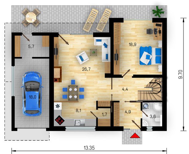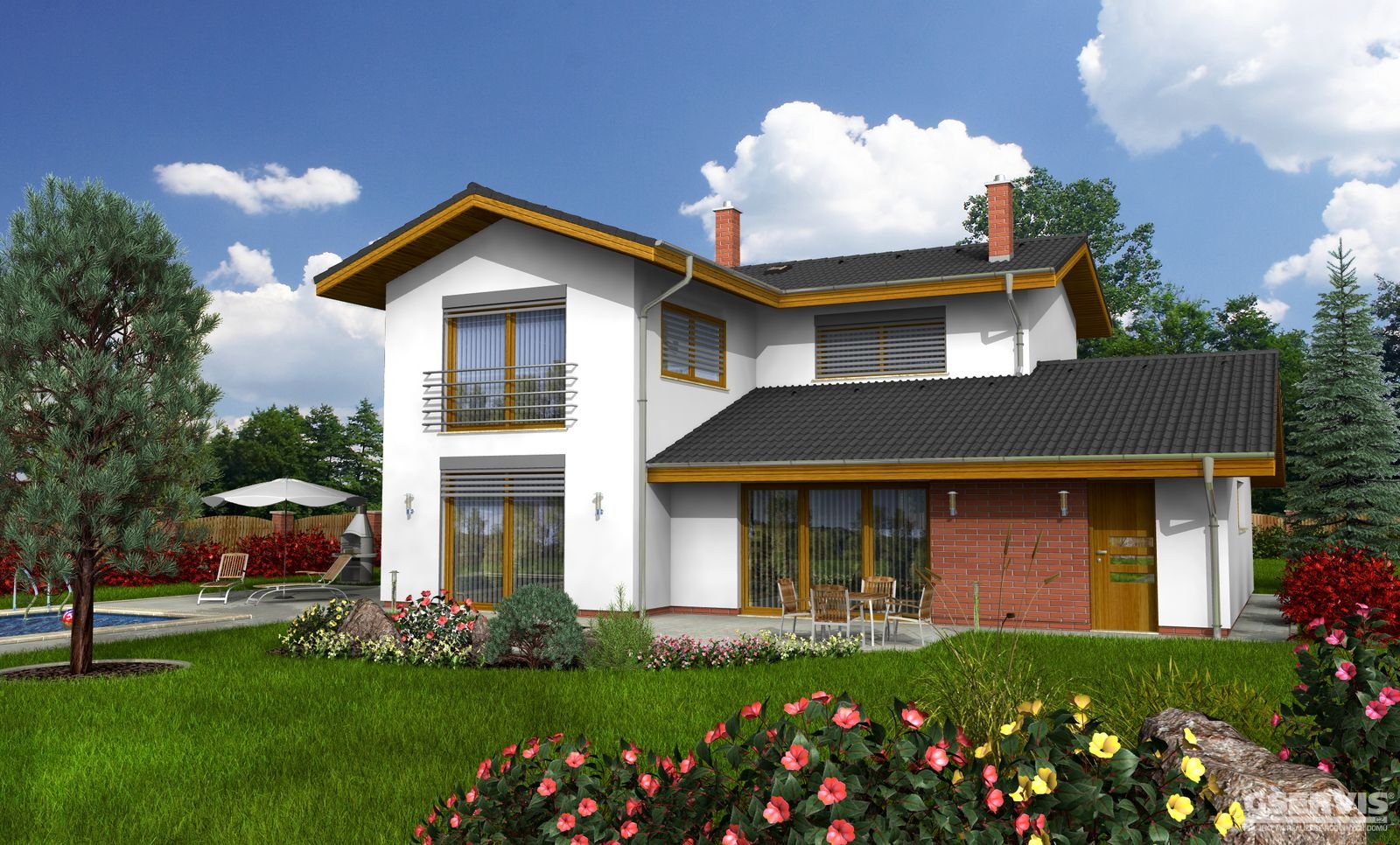 Amfora je dům střední velikostní kategorie, vhodný do dvoupodlažní okolní zástavby, vhodný pro rovinatý, popř. mírně svažitý pozemek. Svými vnitřními prostory uspokojí nároky na bydlení 4-5 členné rodiny, noční část je od denní dispozičně vhodně oddělena.