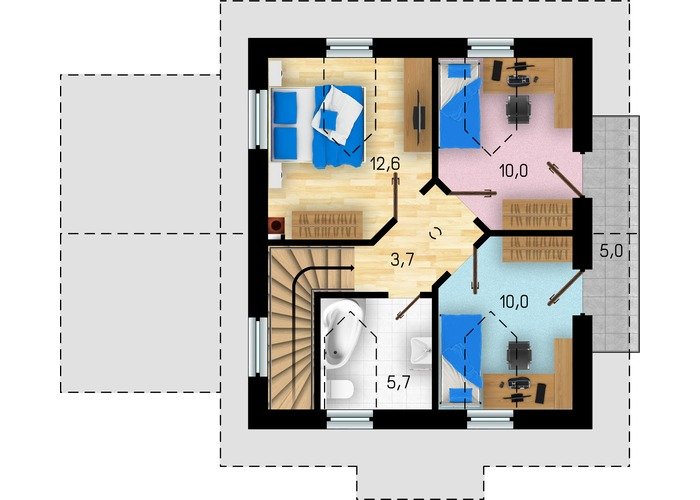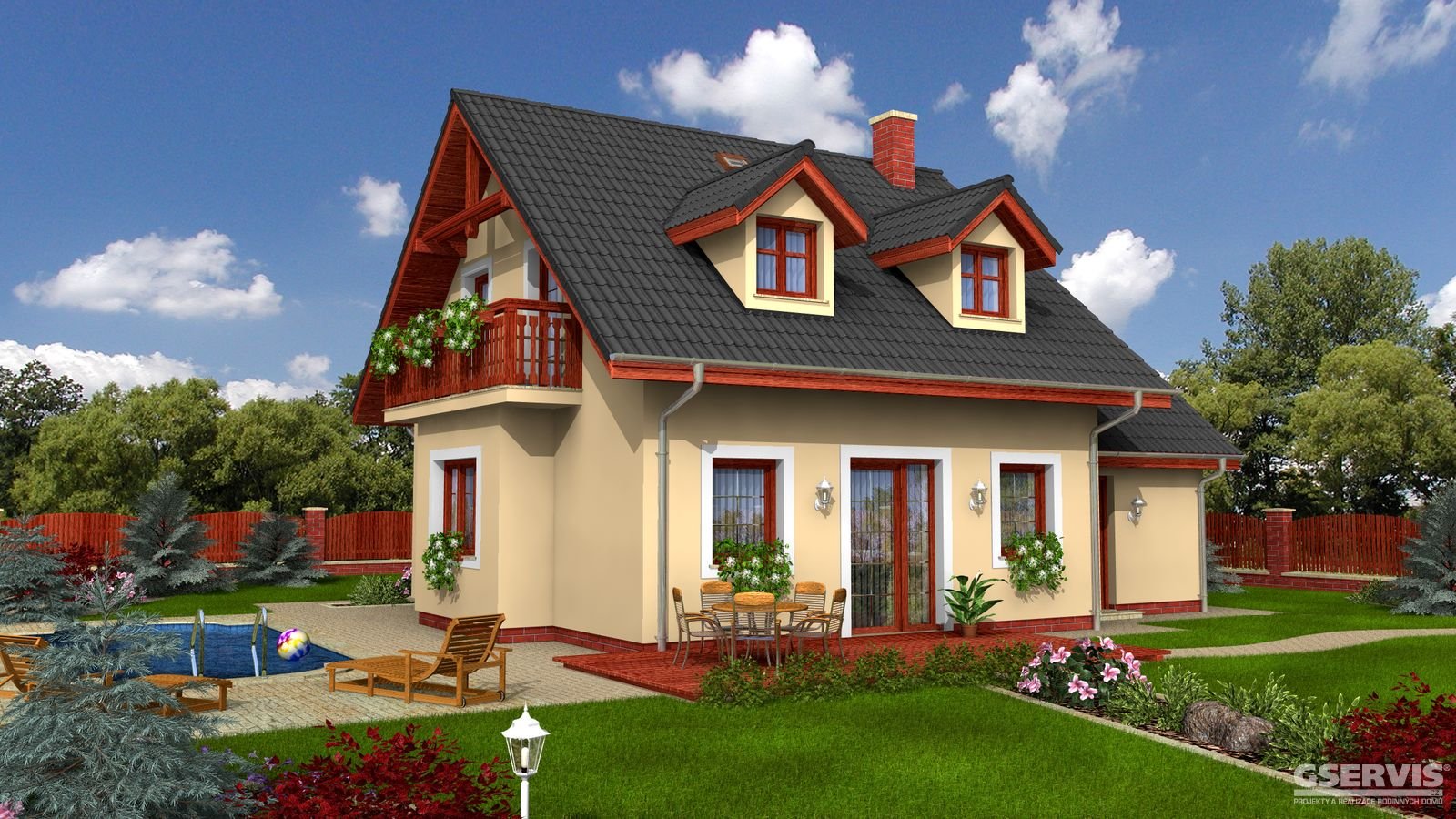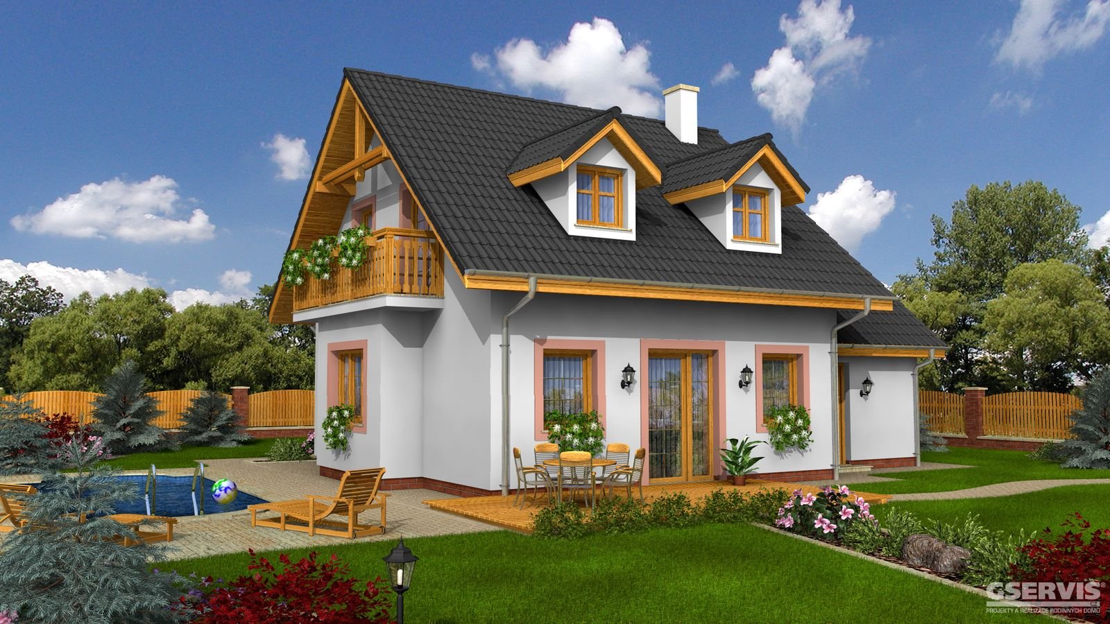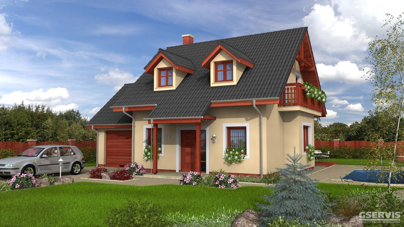 Hit 1 je dům menší velikostní kategorie, vhodný do dvoupodlažní okolní zástavby, vhodný pro rovinatý, popř. mírně svahovitý pozemek, noční klidová část domu je osazena do podkroví, z boční strany je navrženo garážové stání.